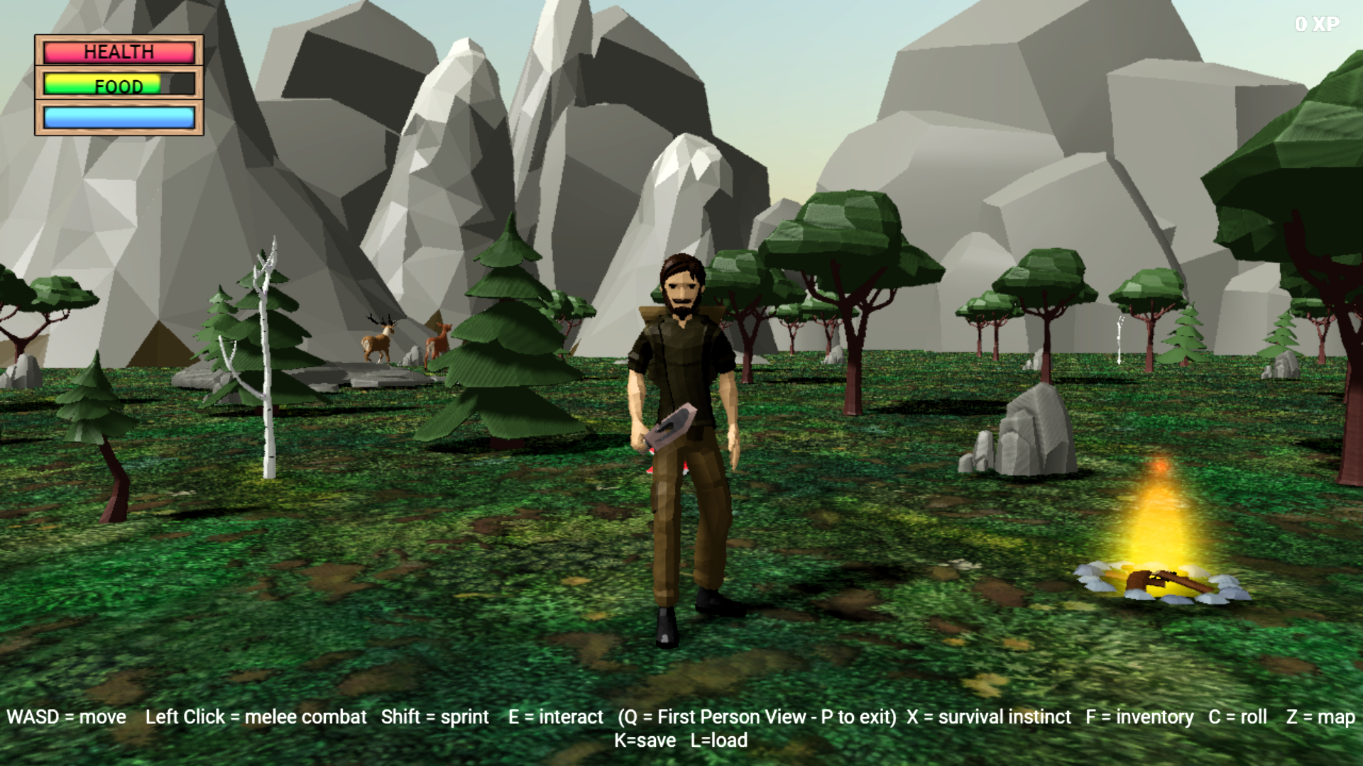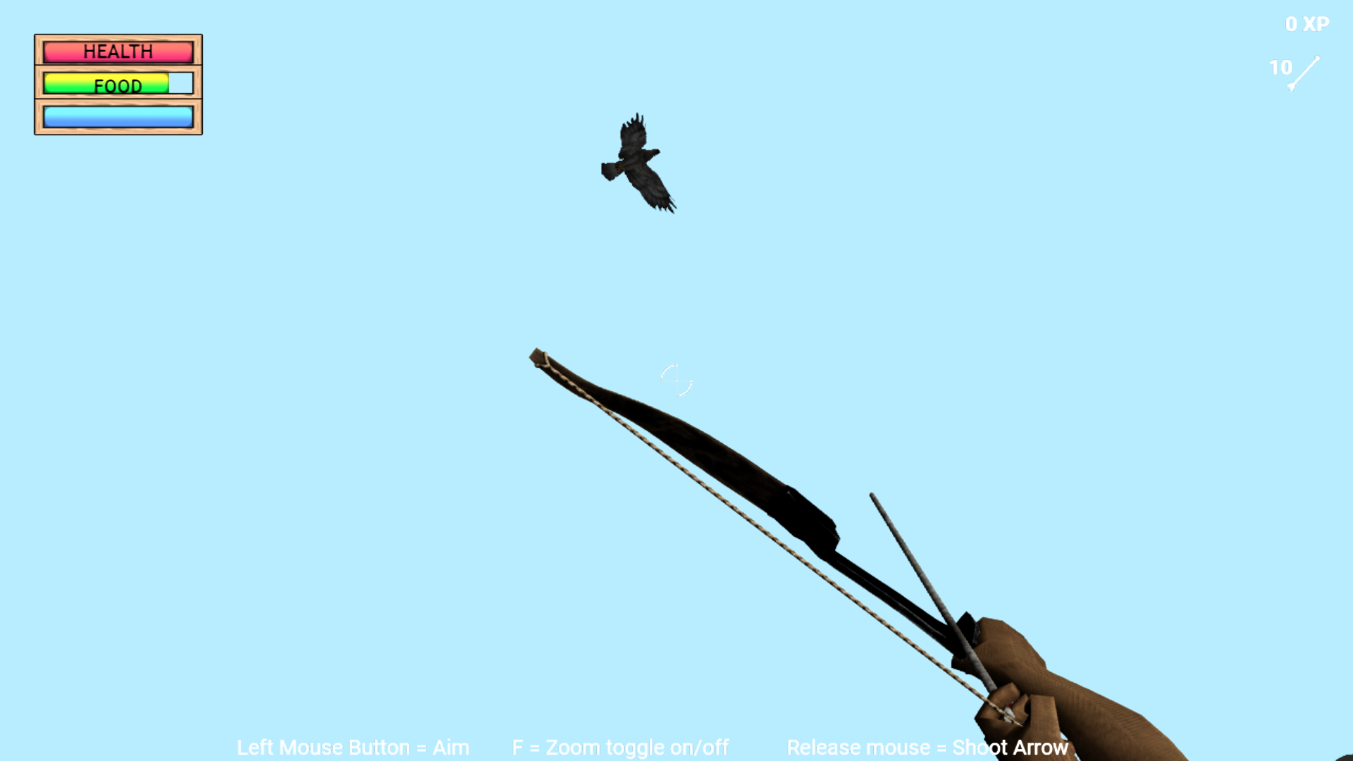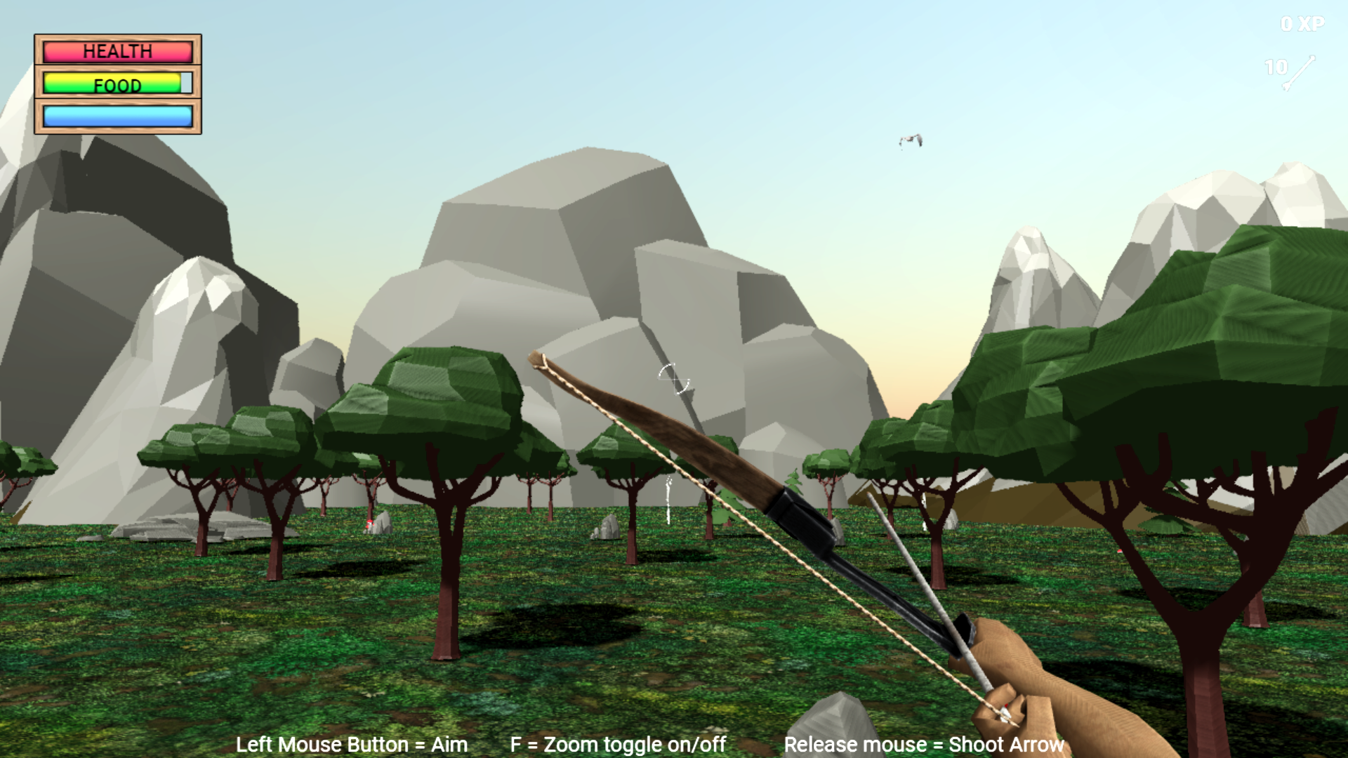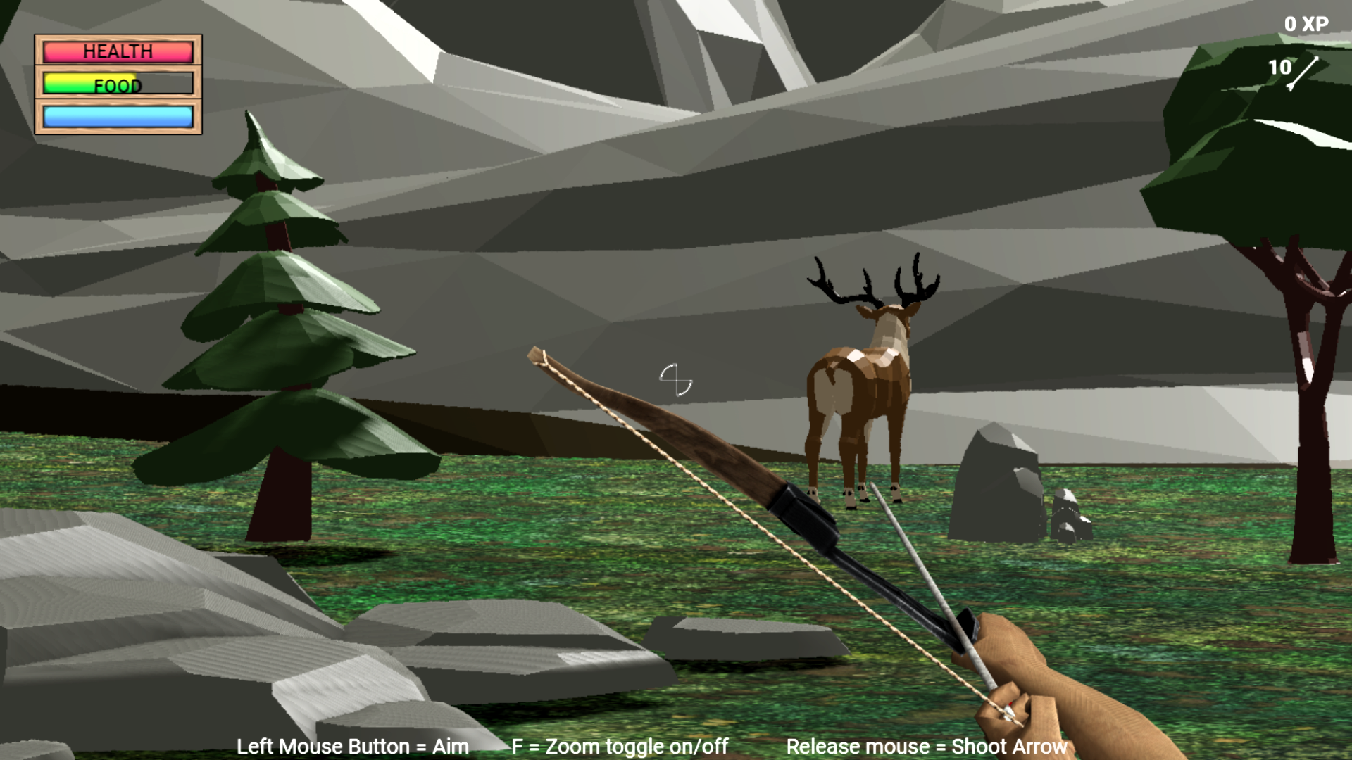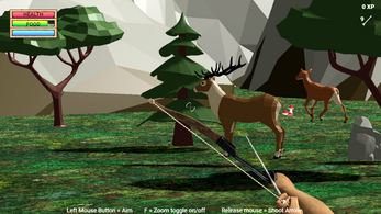 Hunt animals such as deer, stags and wolves to survive. Gather resources like wood, meat and animal skins to craft arrows and a bed. Upgrade your gear.